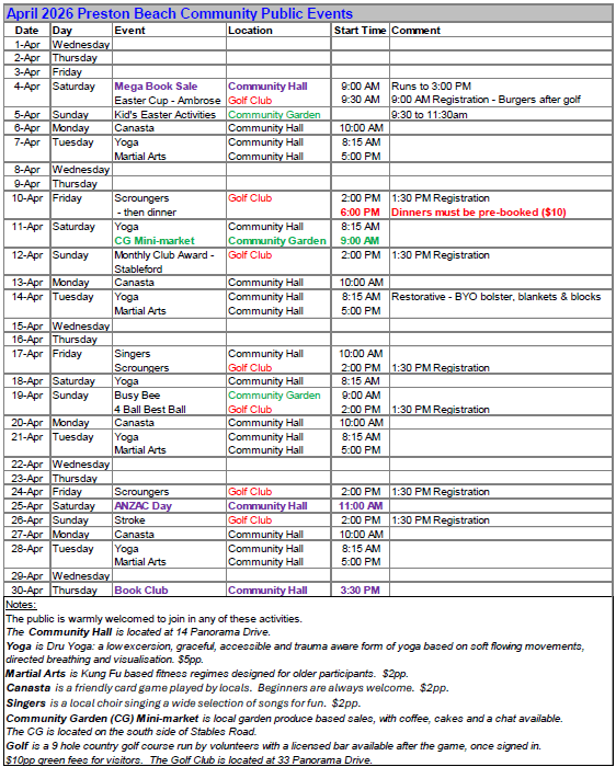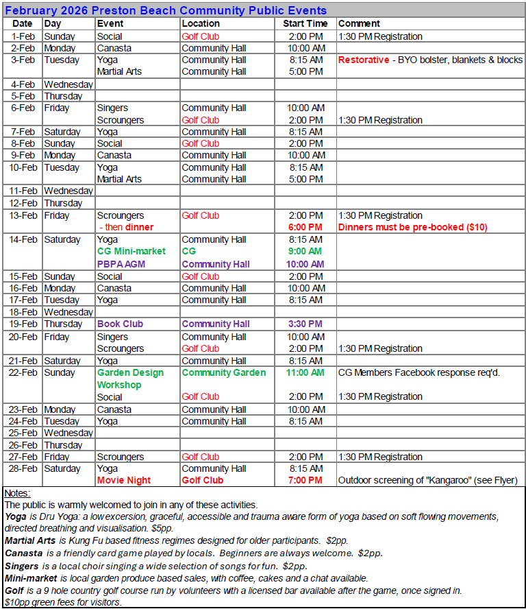 Future Events Planning: Please contact Bob at info.pbprogress@prestonbeachpa